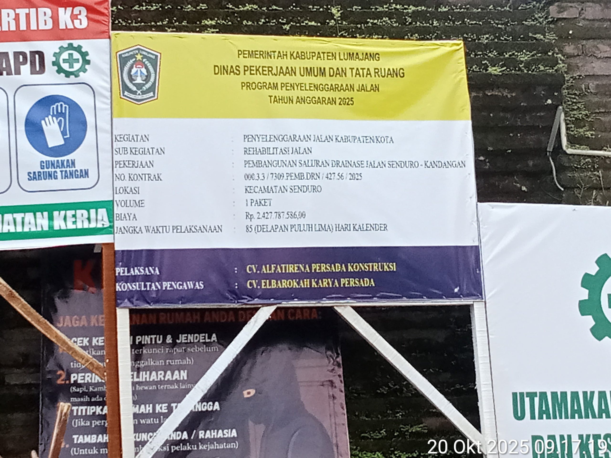 Proyek dengan nomor kontrak 000.3.3/7309PEMB.DRN/427.56/2025 dilaksanakan oleh CV Alfatirena Persada Konstruksi, sementara CV Elbarokah Karya Persada bertindak sebagai konsultan pengawas.