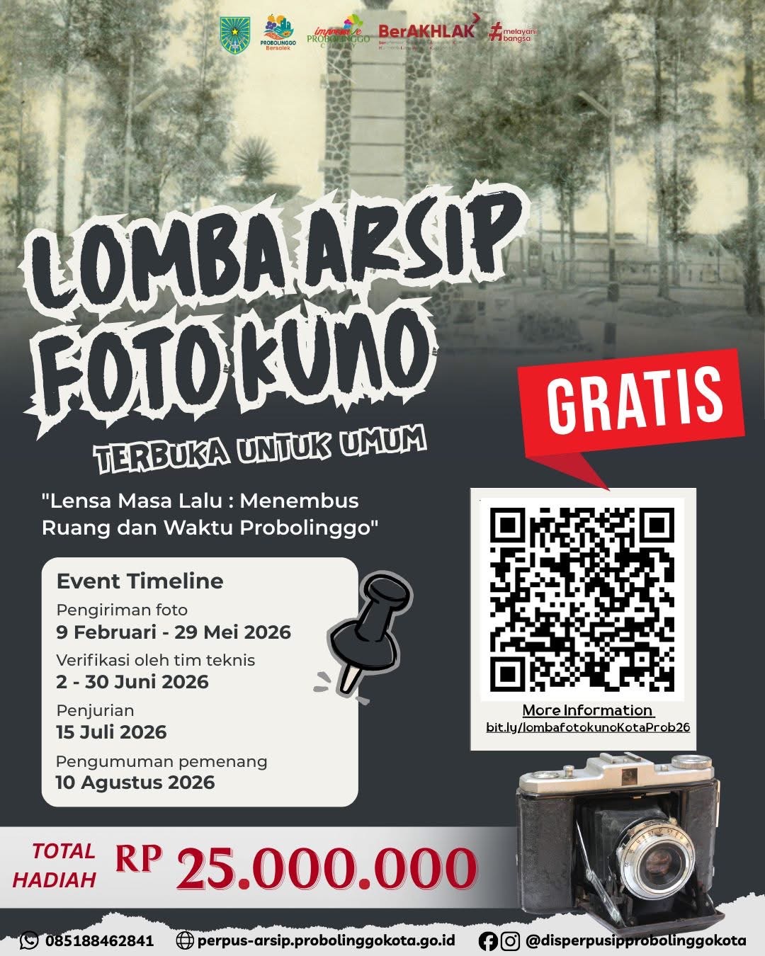 Masyarakat yang ingin mendapatkan informasi lebih lanjut dapat mengakses tautan resmi panitia atau menghubungi kontak yang telah disediakan. Melalui lomba ini, diharapkan arsip foto kuno tidak hanya tersimpan, tetapi juga menjadi sumber inspirasi lintas generasi dalam memahami sejarah Kota Probolinggo.