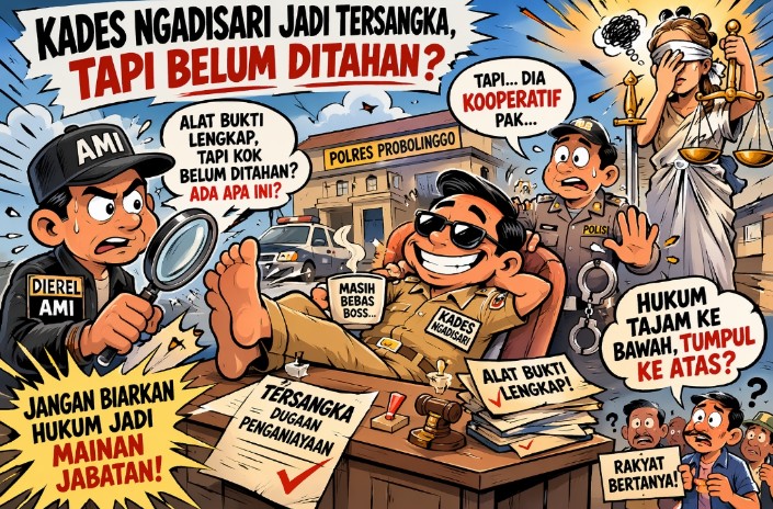 Foto karikatur: Kepala Desa Ngadisari jadi tersangka, namun masih bebas berkeliaran.